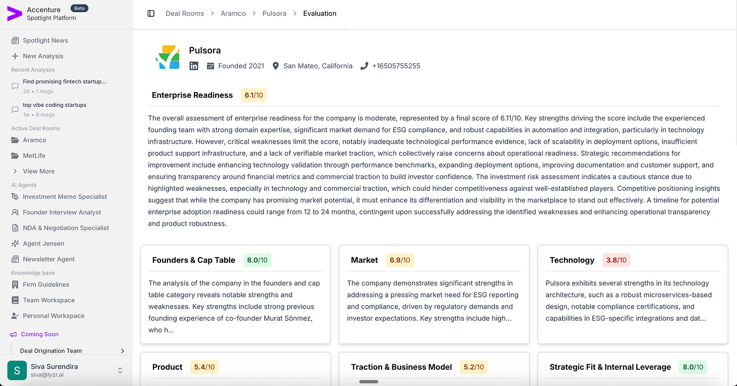 A few weeks down the line, we built a fully agentic AI system in partnership with Accenture that automates the evaluation of startups across 88 different parameters.