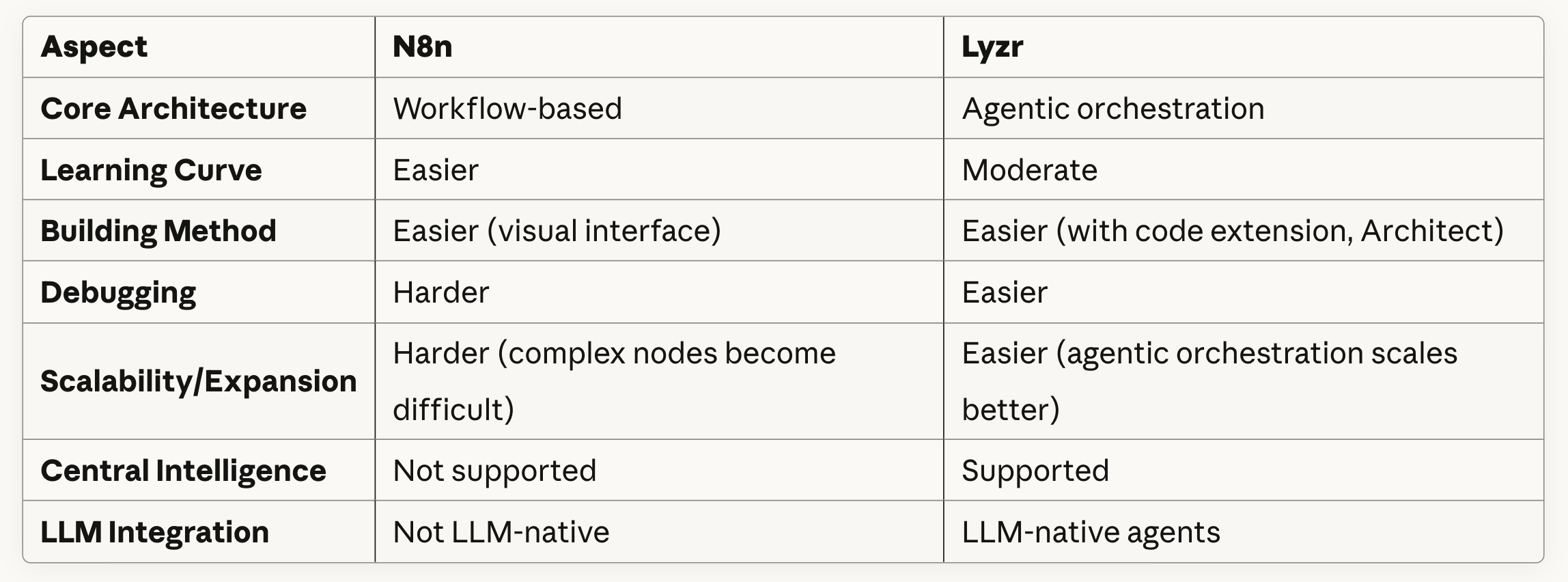 So just to summarize the whole aspect when we are comparing N8n and Lyzr:
