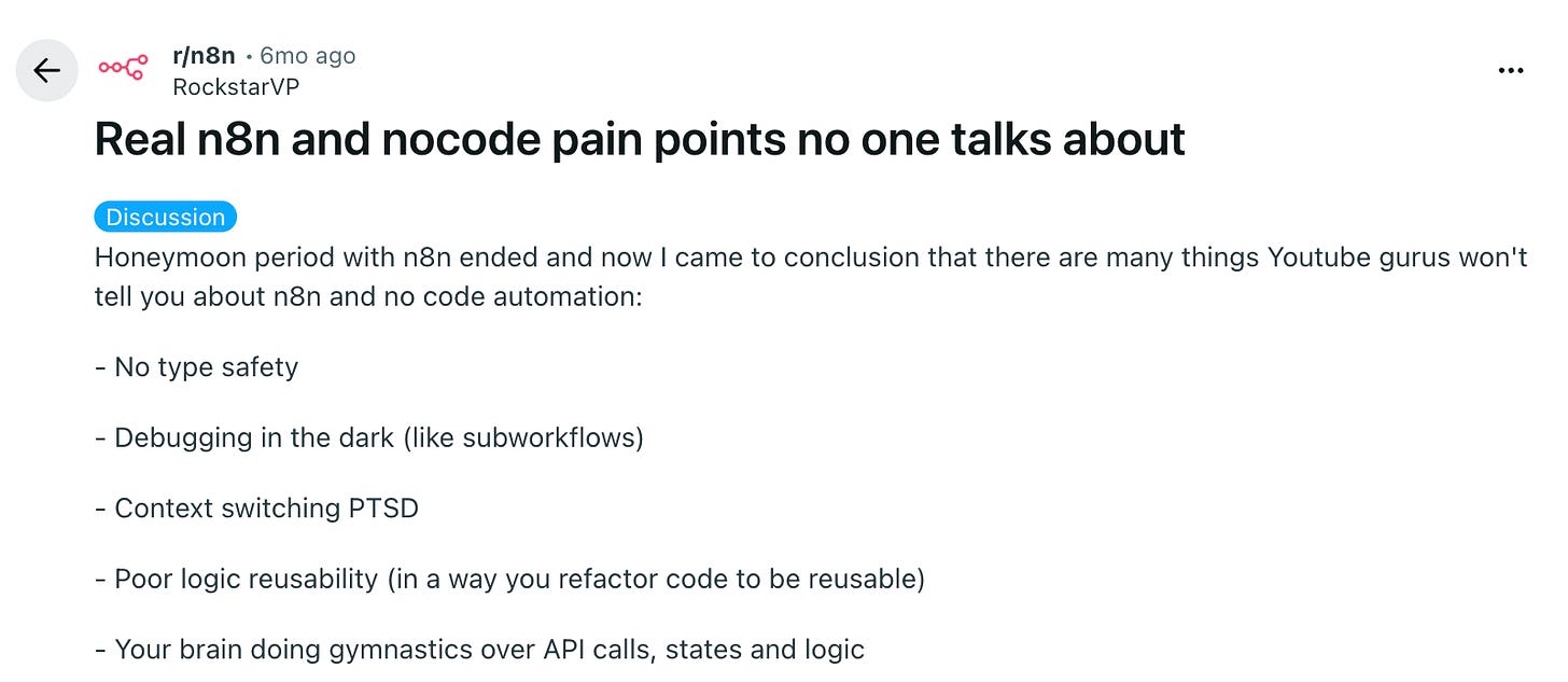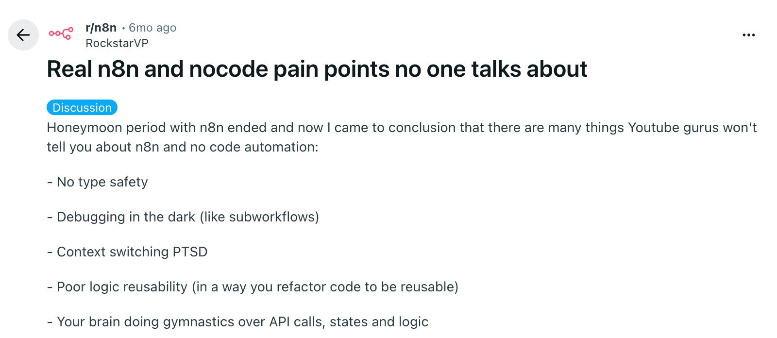 While N8n templates are easier to build, the maintenance and debugging are another large issue.